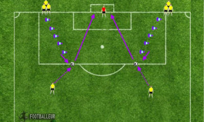 Cet exercice a pour objectif d’améliorer la maitrise du ballon lors d’un slalom et de finaliser pertinemment au travers d’une frappe...